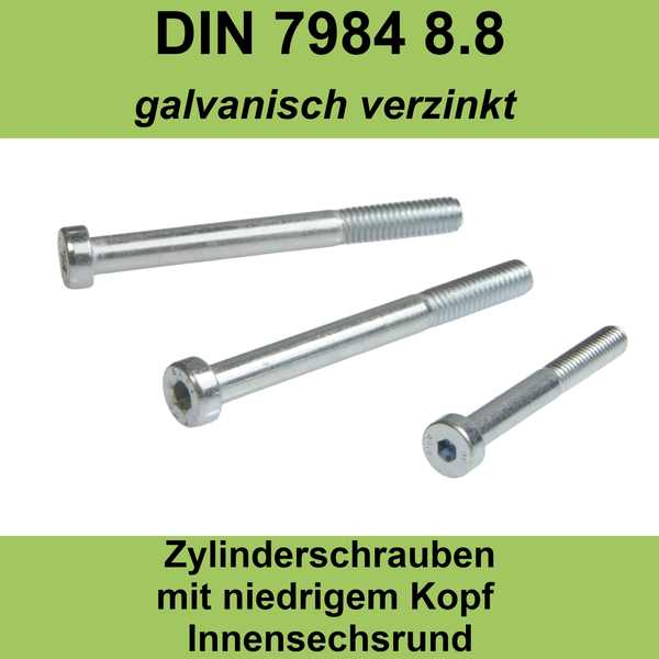 DIN 7984 08.8 galvanisch verzinkt Zylinderschrauben mit Innensechskant, niedriger Kopf - Abmessung: M 10 |